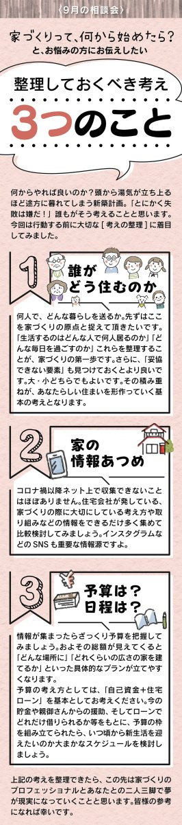 新築計画で失敗しないために、行動前に考えを整理することが重要。今回は家づくりの出発点として押さえるべき3つの視点を解説します。